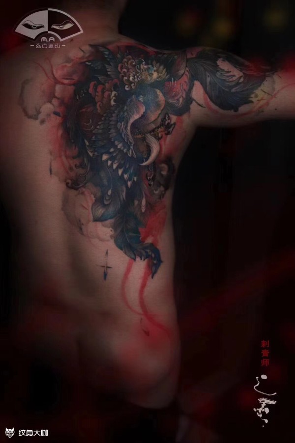 【凤凰】|古风意向顾客年轻时纹的图,一直想改,找过很多纹身师出方案都不太满意。最后找到我们想以水墨的形式进行修改。原图存在两个比较致命的点