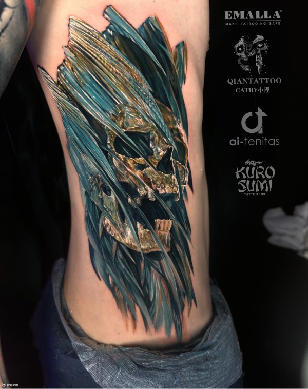 稀有金属色大脑袋2 Session work.第一次尝试这种质感的图敢纹腰的都是勇士!方向跟随肌肉结构,当腰部扭动时,骷髅会随着皮肤的拉动而变化.下篇放视频