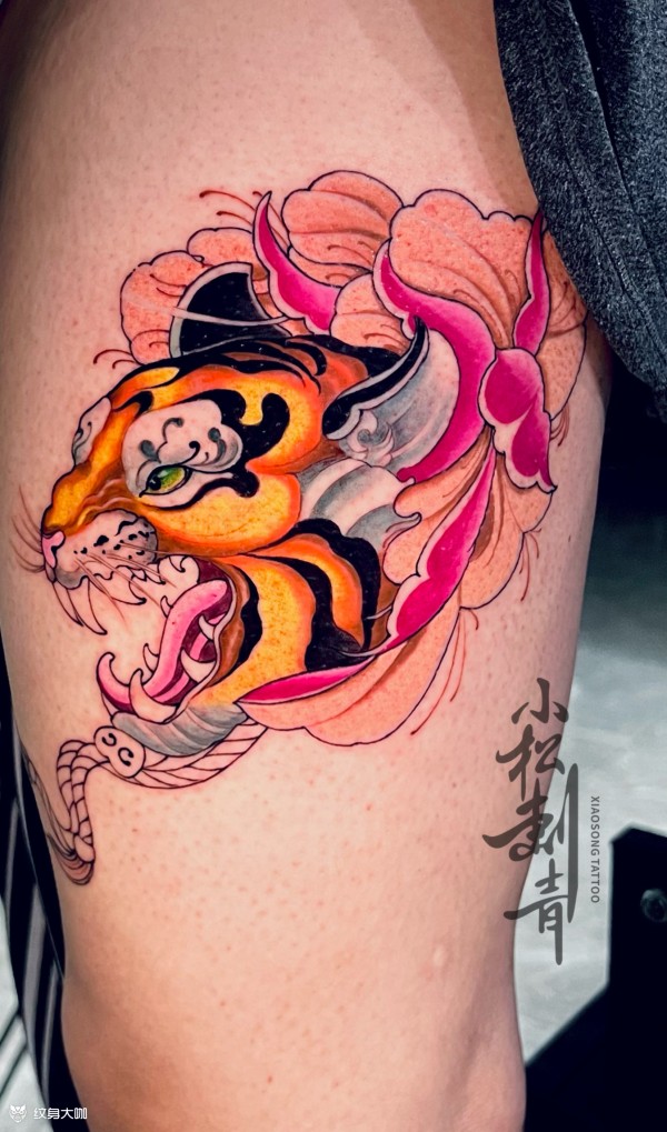 传统花腿纹身--18张传统风格的大花腿纹身图案作品