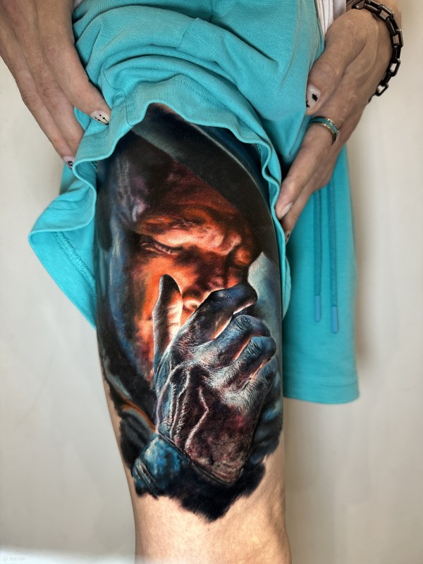 花腿纹身--一组大黑腿纹身图案作品欣赏