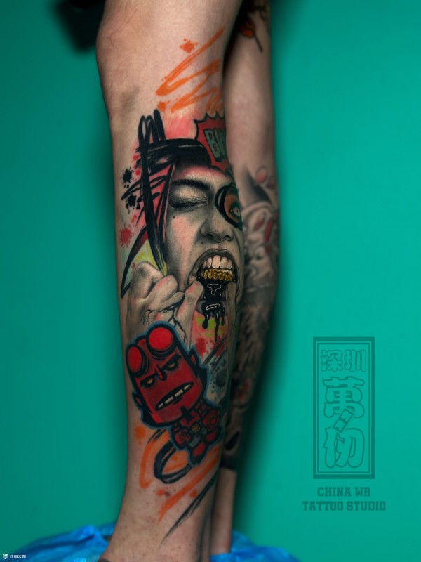 花腿纹身--一组大黑腿纹身图案作品欣赏