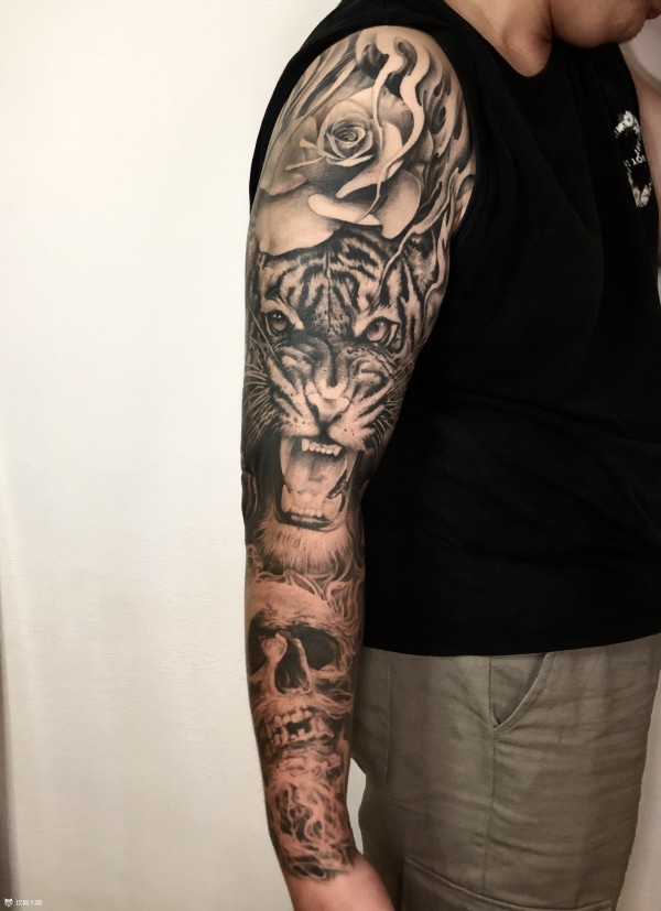 欧美黑灰写实拼接去年纹的外侧!今年终于把内侧填满了。小臂晒成牛皮纸色了[捂脸]