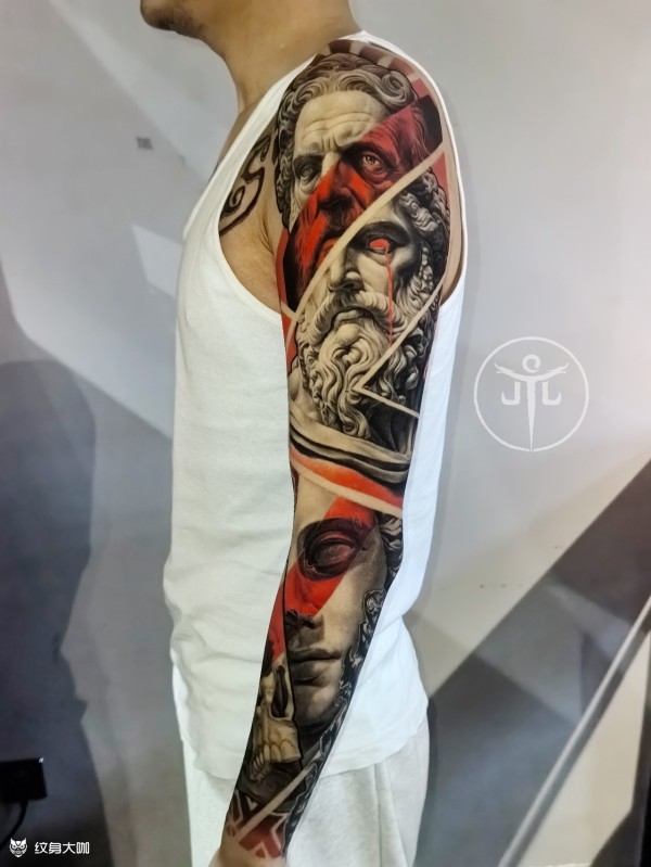 看到这个作品,大家是不是有点面熟?对,这就是今年温州展会获奖的作品,当时只是大臂的纹身,回来后顾客又做了衔接—花臂完工!发给大家看一看。