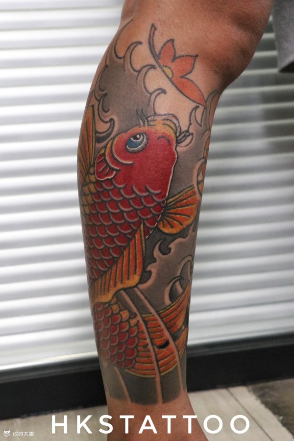 传统鲤鱼花小腿纹身_腿部纹身图案大全_纹身图吧