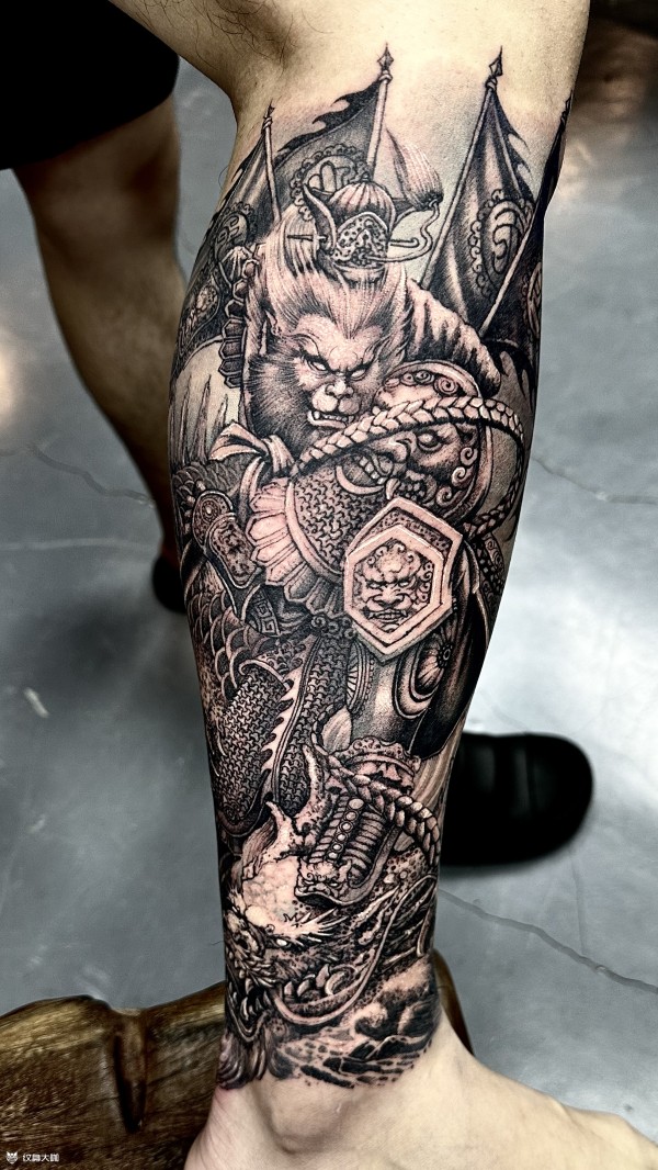 花腿纹身--一组大黑腿纹身图案作品欣赏