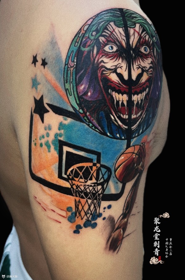 小丑客人是前段时间纹了一个,这次又过来再纹一个。根据客人的描述:全部是原创设计。