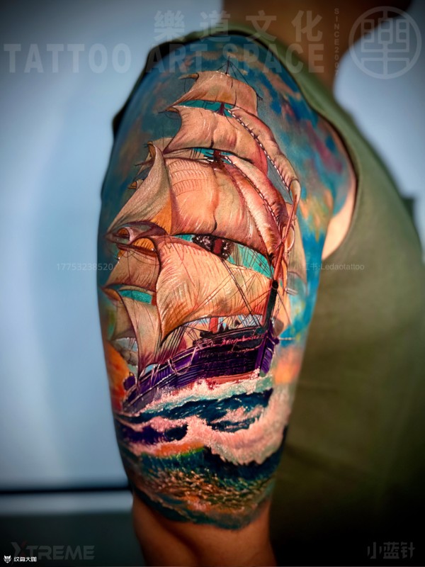 海阔天空一帆风顺乘风破浪勇往直前#乐道定制#乐道刺青#乐道出品