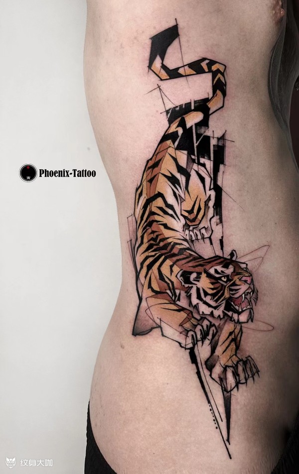 侧腰霸气老虎头纹身_腰部纹身图案大全_纹身图吧