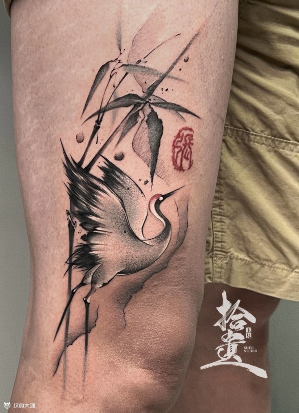 传统花腿纹身--18张传统风格的大花腿纹身图案作品