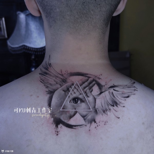 女生背部黑灰素描点刺技巧霸气大面积满背翅膀纹身图片