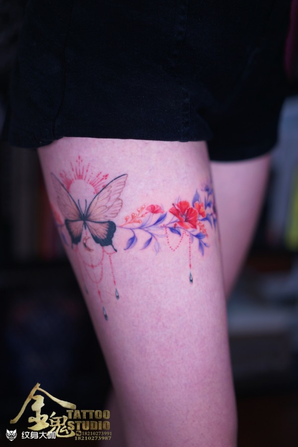 女孩腿部唯美刺青_腿部纹身图案大全_纹身图吧