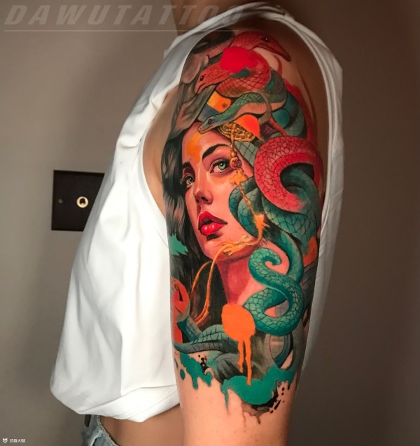 美杜莎✅彩色美杜莎新鲜出炉 来自山西大同的小姐姐,全程用时十小时左右,很抗疼,点赞
