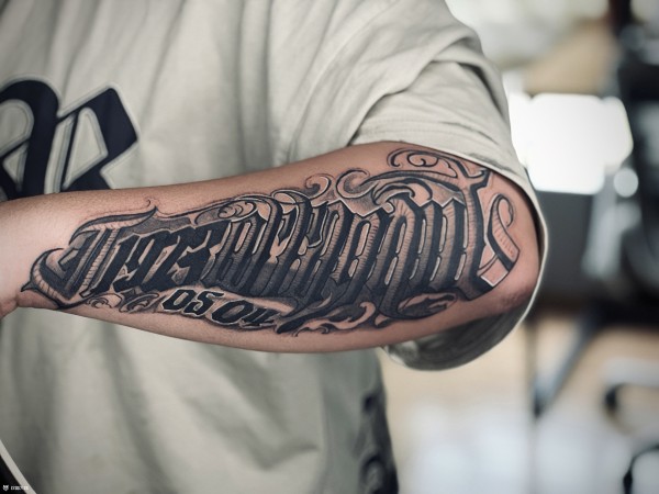 9张胳膊上很有个性的黑色英文花体字纹身图案
