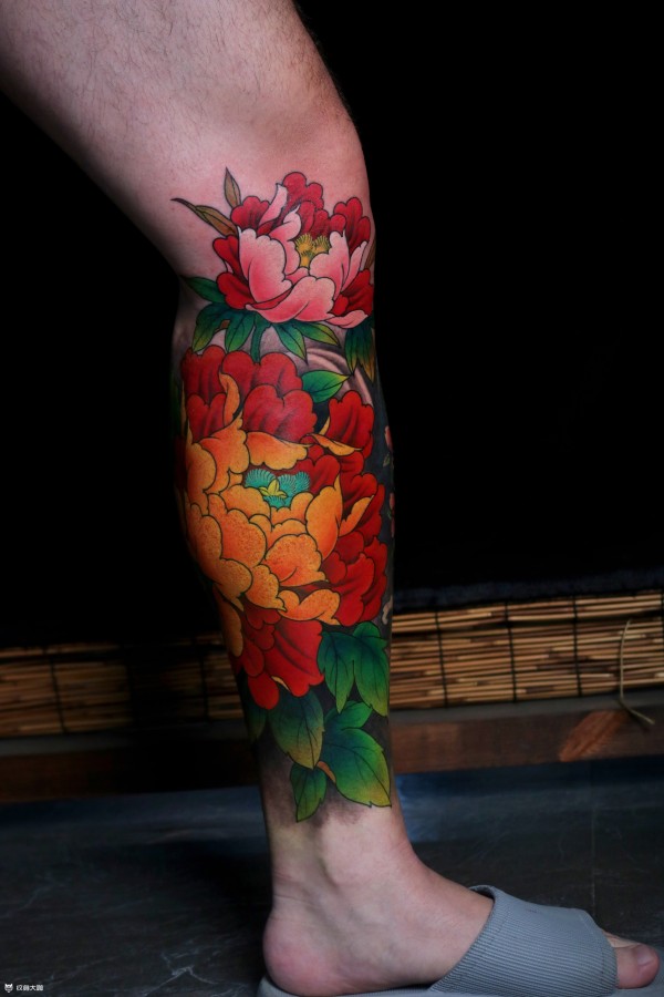 日式风格的传统花腿纹身作品欣赏