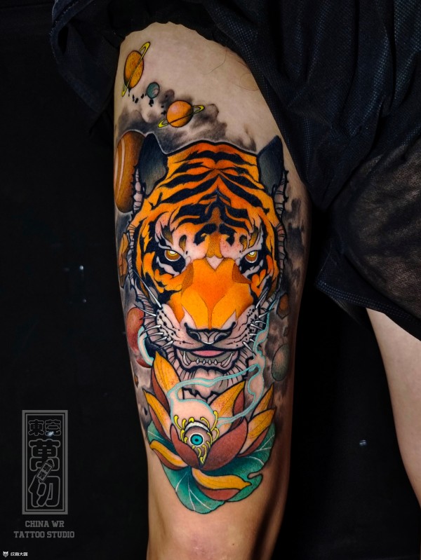 传统花腿纹身--18张传统风格的大花腿纹身图案作品