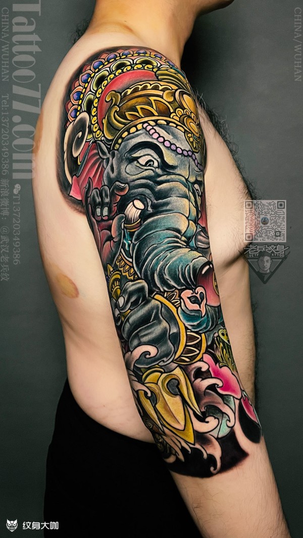 遮盖旧纹身:新传统象神