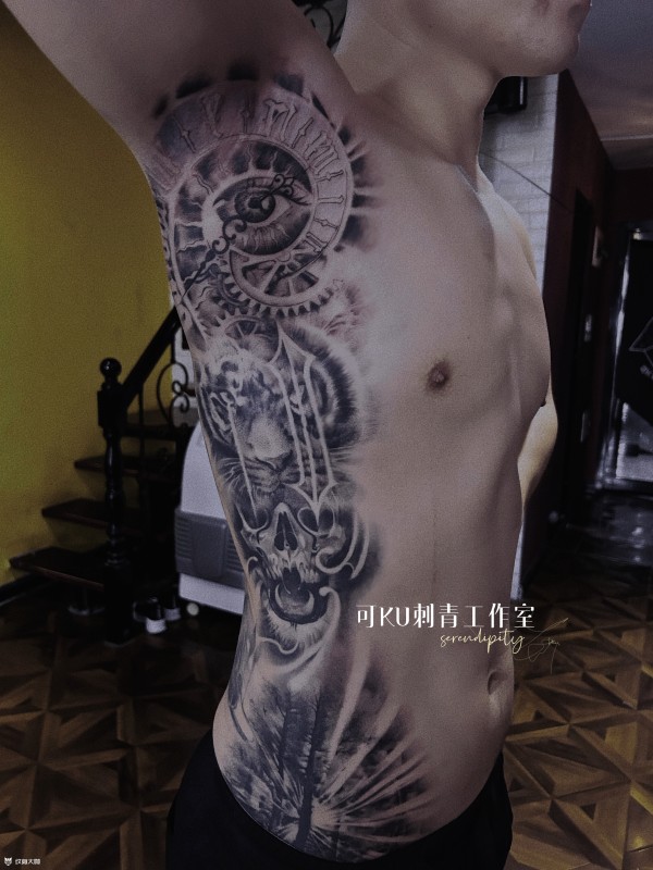 侧腰霸气老虎头纹身_腰部纹身图案大全_纹身图吧