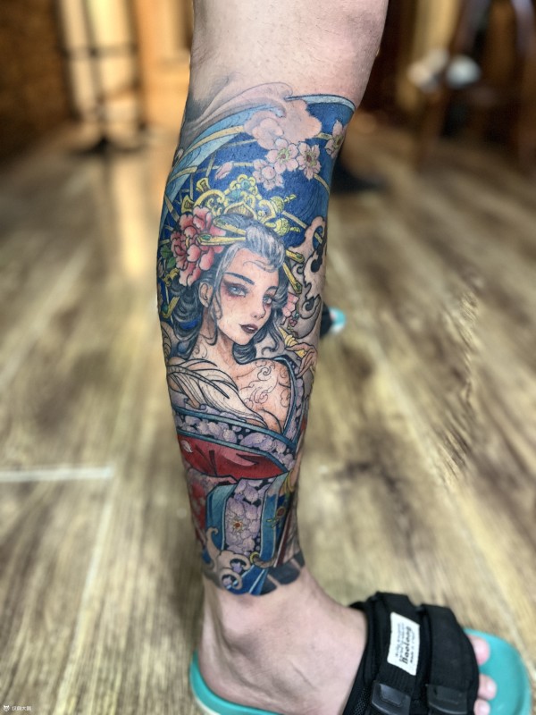 传统花腿纹身--18张传统风格的大花腿纹身图案作品