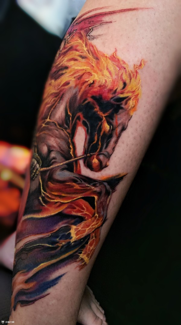 花腿纹身--一组大黑腿纹身图案作品欣赏