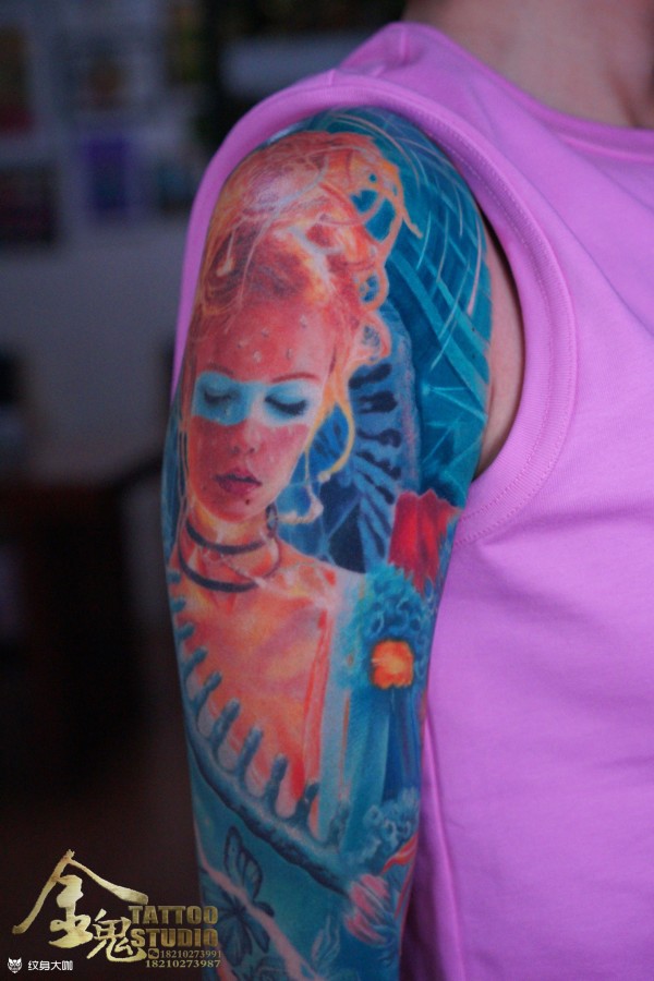 个性狂野美女霸气花臂纹身_手臂纹身图案大全_纹身图吧
