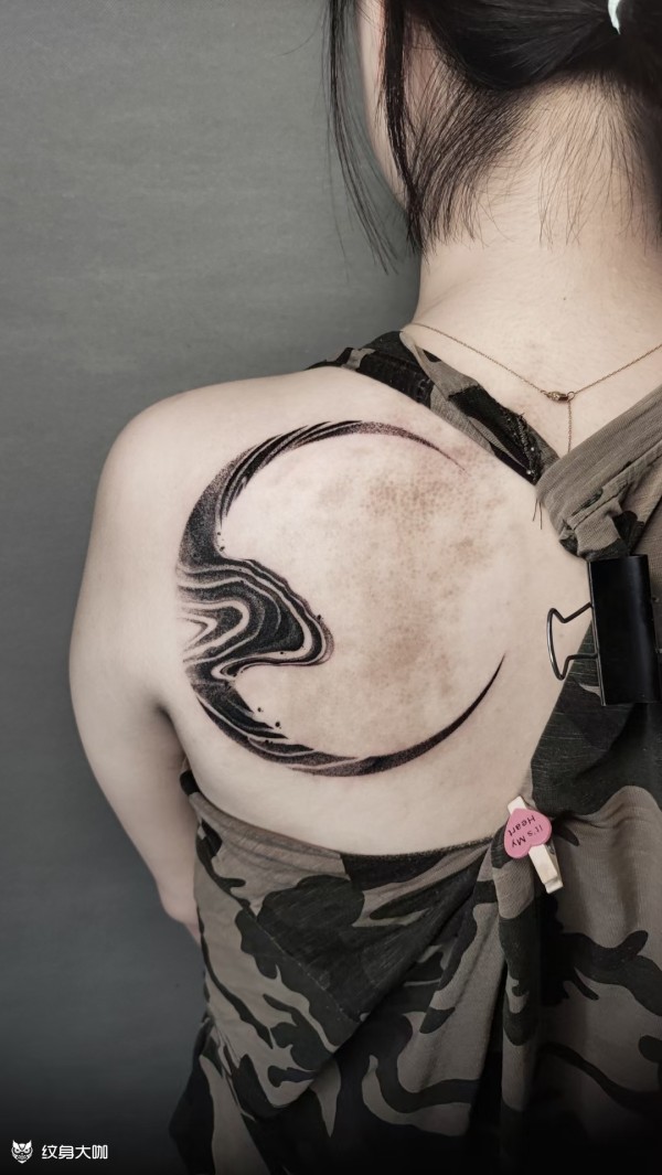女生背部黑灰素描点刺技巧霸气大面积满背翅膀纹身图片