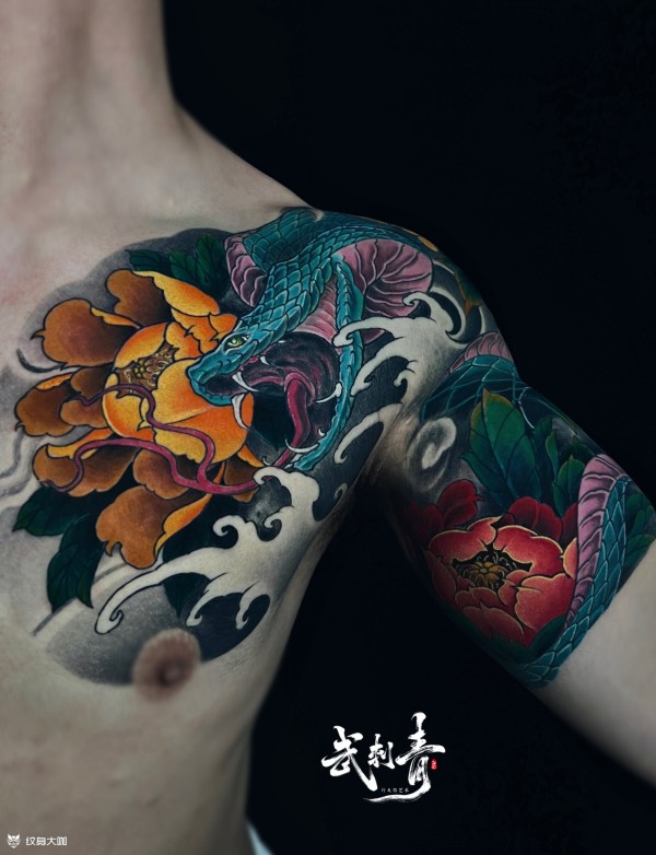 蛇盘牡丹题材