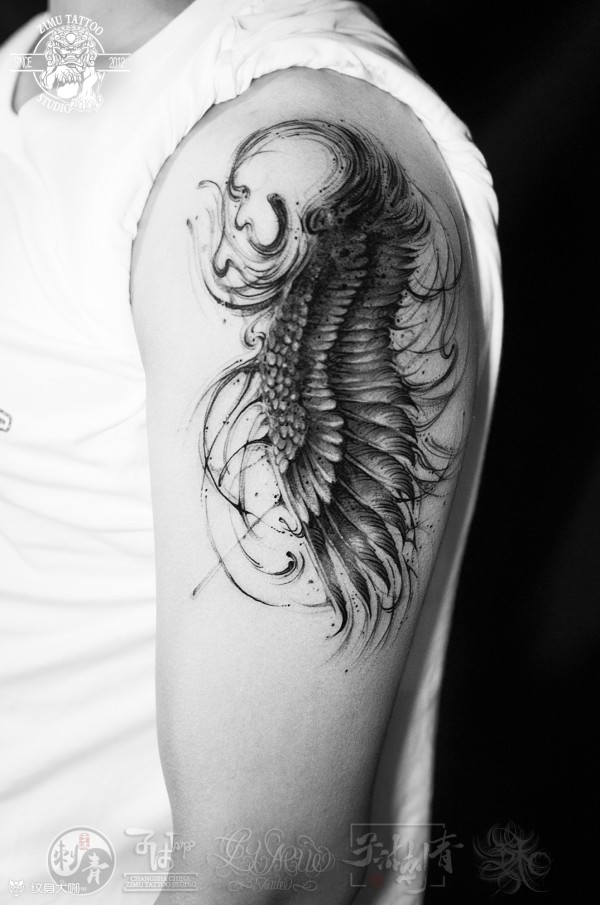大臂翅膀泼墨写实