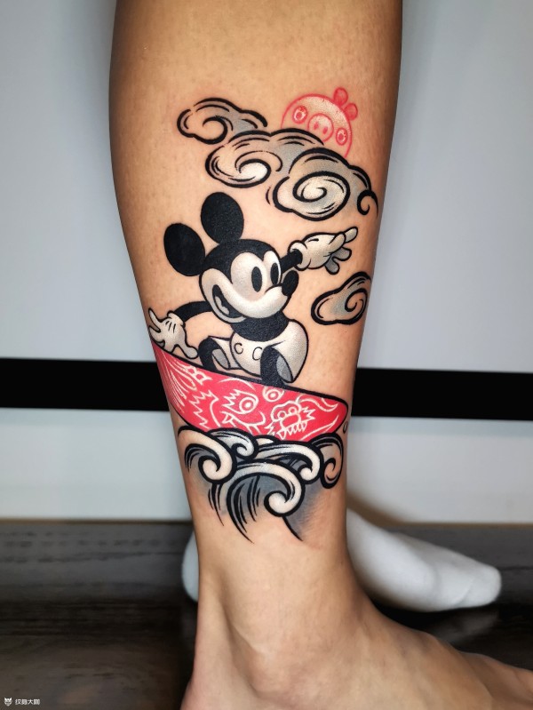 冲浪客人要求:米老鼠,龙,猪,剩下交给我发挥。整体还是走我个人喜欢的复古味道,初代米奇,中式纹样里的龙,怀旧游戏中的猪,再加上传统浪花和祥云,塑造一个现代的场景