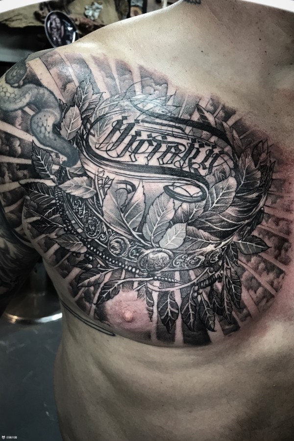 纹身图案胸部男 简洁大方的男生胸部纹身图案