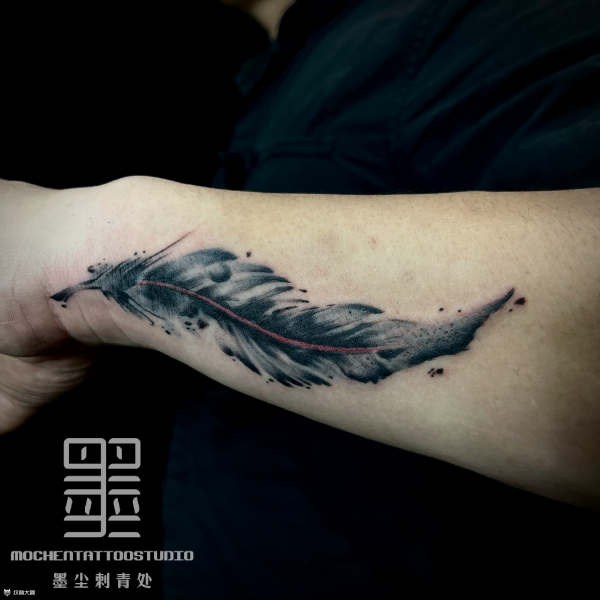 水墨羽毛焦浓重淡清 水墨风格 羽毛 遮盖旧纹身 感谢信任耗时2小时