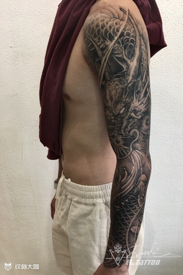 日式手彫刺青作品—半甲龙很感谢客户认可手彫刺青,手彫是日本纹身的手工雕刻技术,时间可以追溯到日本17世纪的江户时代。19世纪,手彫技术被日本黑帮挪用,被用作入会仪式,象征着从此就是江湖中人。在日式传统