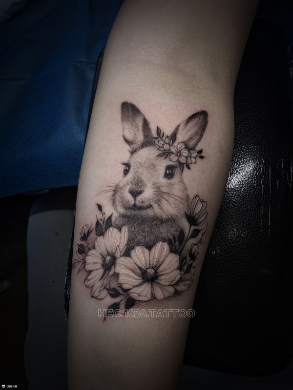 女生猫咪兔子个性手臂纹身_手臂纹身图案大全_纹身图吧