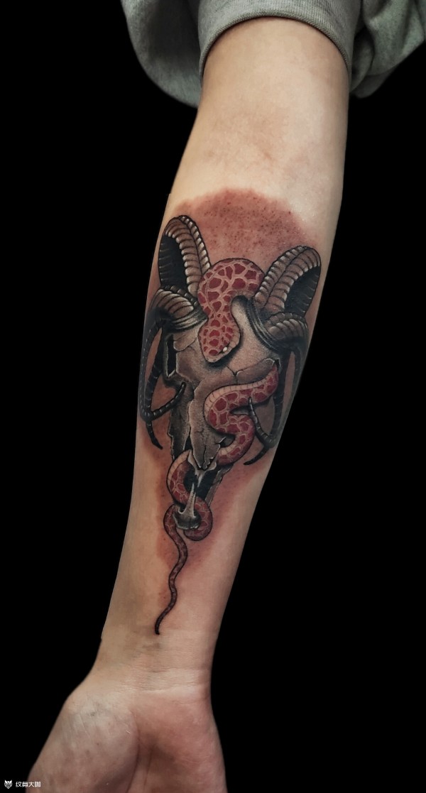 原创暗黑羊头蛇撒旦配蛇,暗黑在纹身里是小众中的小众