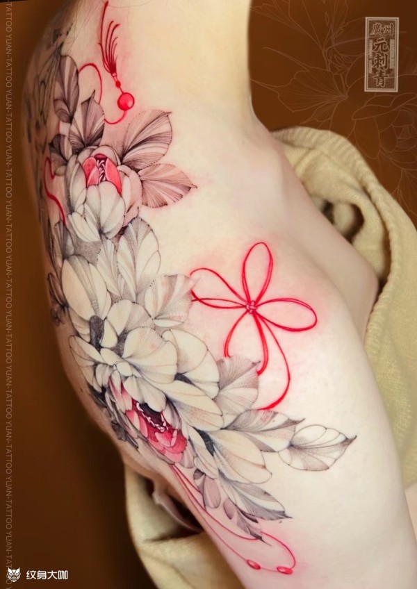 女生肩花纹身_15张女性双肩对称的肩花纹身图案作品图片