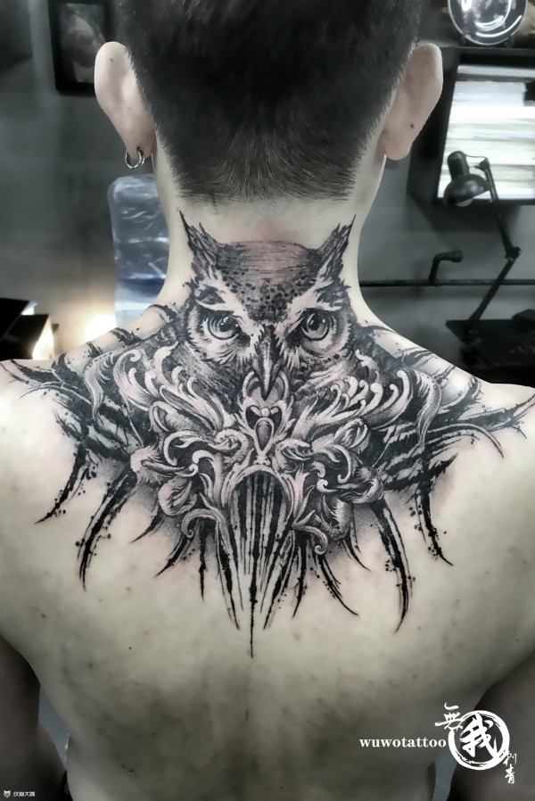 女生背部黑灰素描点刺技巧霸气大面积满背翅膀纹身图片