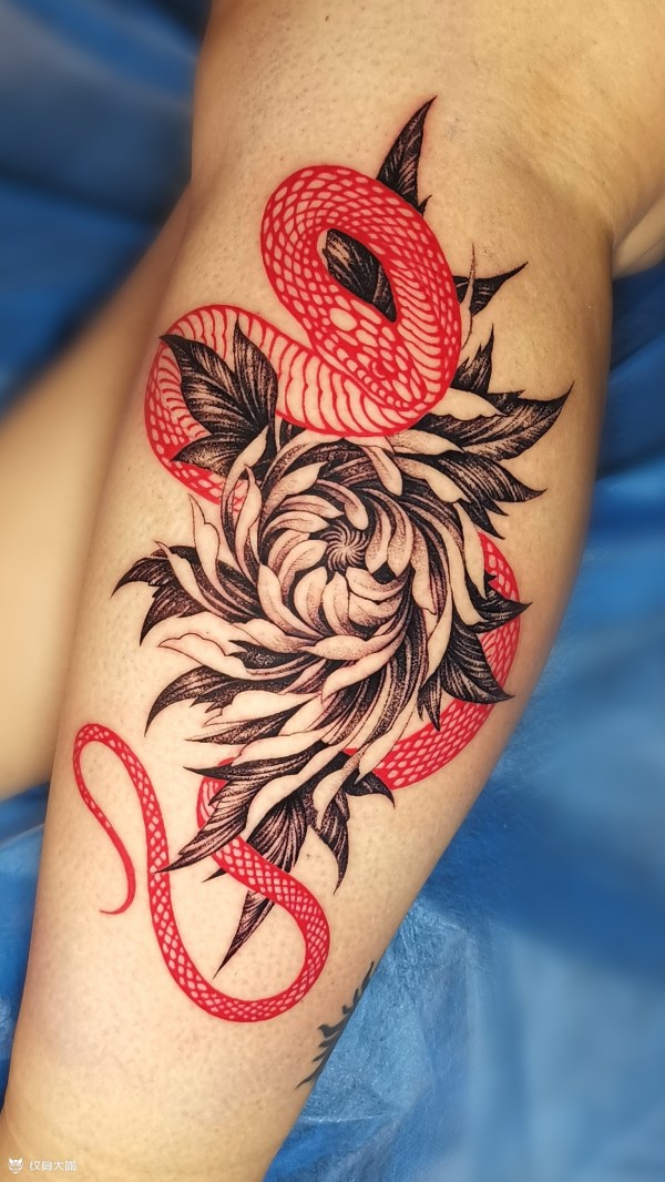 花腿纹身--一组大黑腿纹身图案作品欣赏