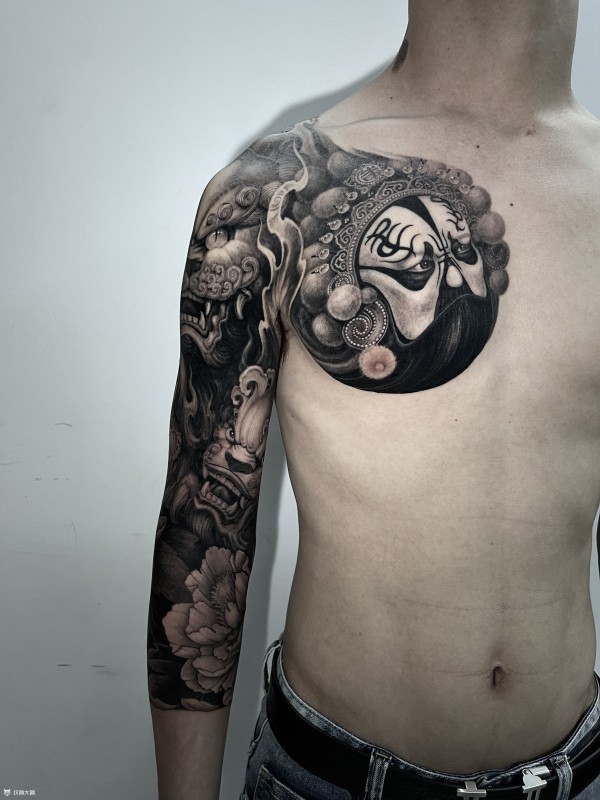 富贵双狮 临摹师傅岳阳新刺客的作品每次临摹师傅的作品都能从中学习到很多东西 并且在做的过程也很享受 客人很喜欢师傅的这个作品 三年前预约的就是这个图 现在依然没有变 作品的含义也是很好元素有霸王
