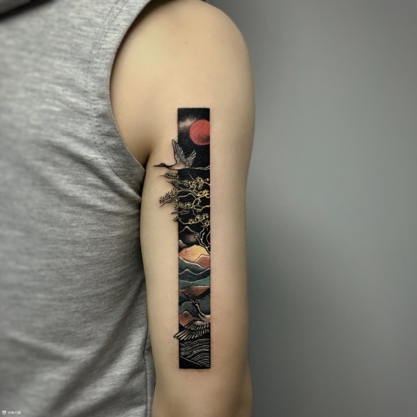 25款男性黑色手臂线条纹身点刺技巧半甲纹身图案