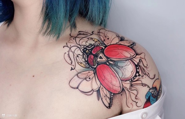 就算是一只昆虫 也可以做成好看就算是一只昆虫 也可以做成好看的昆虫!纹身现在已经不是什么新鲜事了 更多的是艺术表达了 只是绘画媒介变成了你我他的皮肤!女生纹身·彩色纹身·昆虫纹身◾️纹身作品◾️