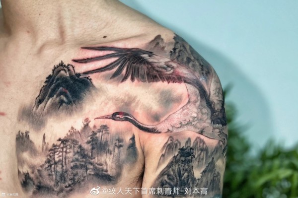 纹身图案胸部男 简洁大方的男生胸部纹身图案