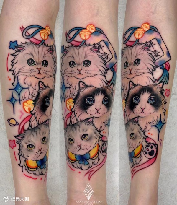 女生猫咪兔子个性手臂纹身_手臂纹身图案大全_纹身图吧