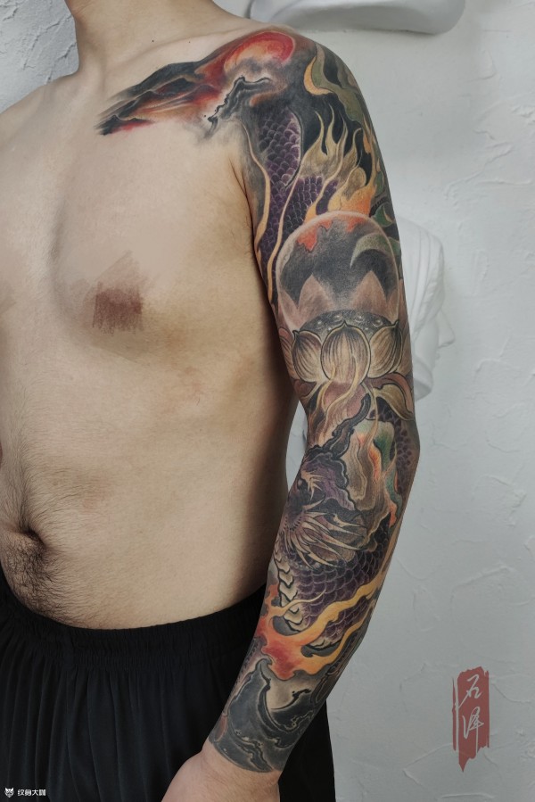 紫麒麟 遮盖 花臂新传统 武汉纹身 原创纹身 纹身遮盖