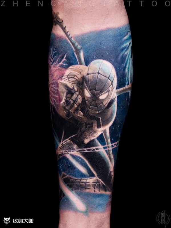 蜘蛛侠•彩色立体纹身With great power comes great responsibility•蜘蛛侠部分已完成|针藏刺青•邵钢作品