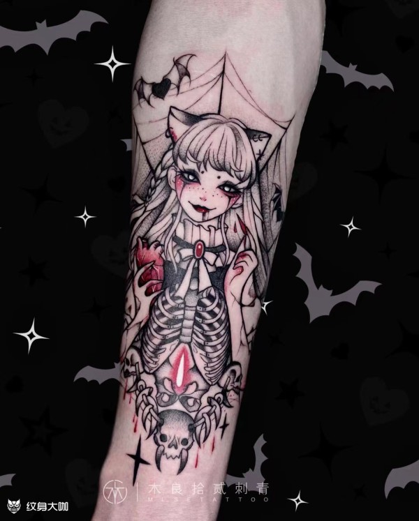 女生猫咪兔子个性手臂纹身_手臂纹身图案大全_纹身图吧