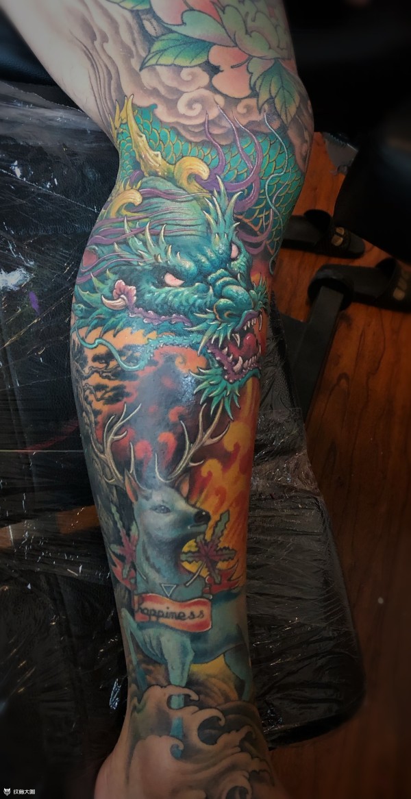 暴力修改青龙以前有小鹿头 跟图腾 遮盖后是龙 鹿