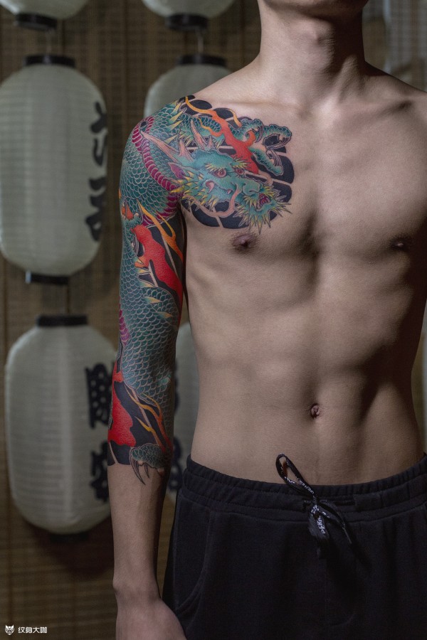 DIAU AN TATTOO 深圳彫安刺青彫静作品 半胛七分袖 老传统 主题内容:龙