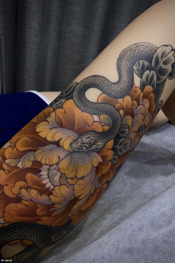 传统花腿纹身--18张传统风格的大花腿纹身图案作品