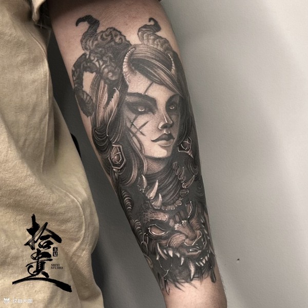 个性狂野美女霸气花臂纹身_手臂纹身图案大全_纹身图吧