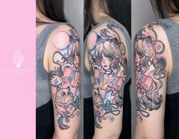 女生猫咪兔子个性手臂纹身_手臂纹身图案大全_纹身图吧