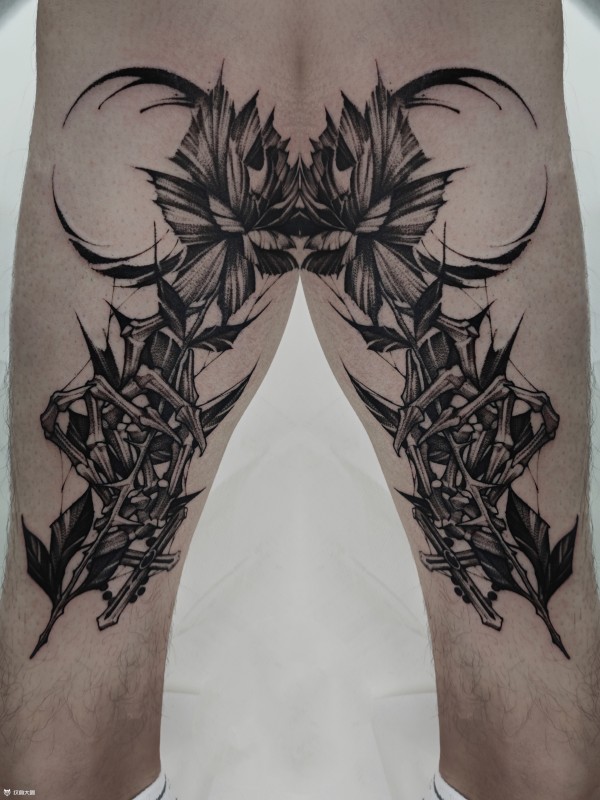 花腿纹身--一组大黑腿纹身图案作品欣赏